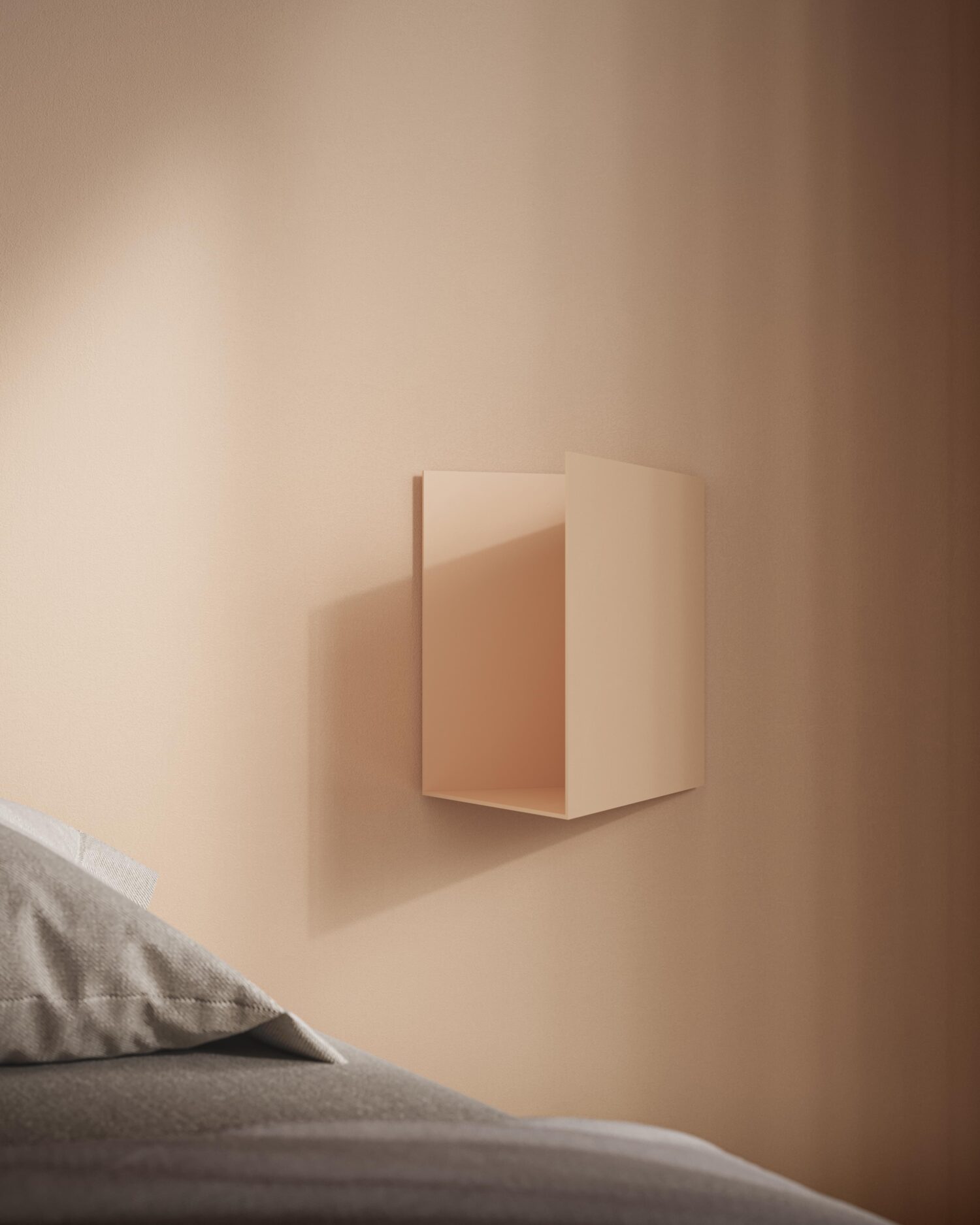 Caletta è un’insenatura privata per gli oggetti del quotidiano che ci servono ma che non vogliamo esibire. Componibile, la mensola può essere in contrasto cromatico con l’apparato murario o in completa mimesi, diventando un decoro in rilievo nella parete. Come fosse una meridiana, Caletta “scandisce” lo scorrere del tempo, sintesi della pratica di studio CALE che progetta l’ombra quanto il costruito.