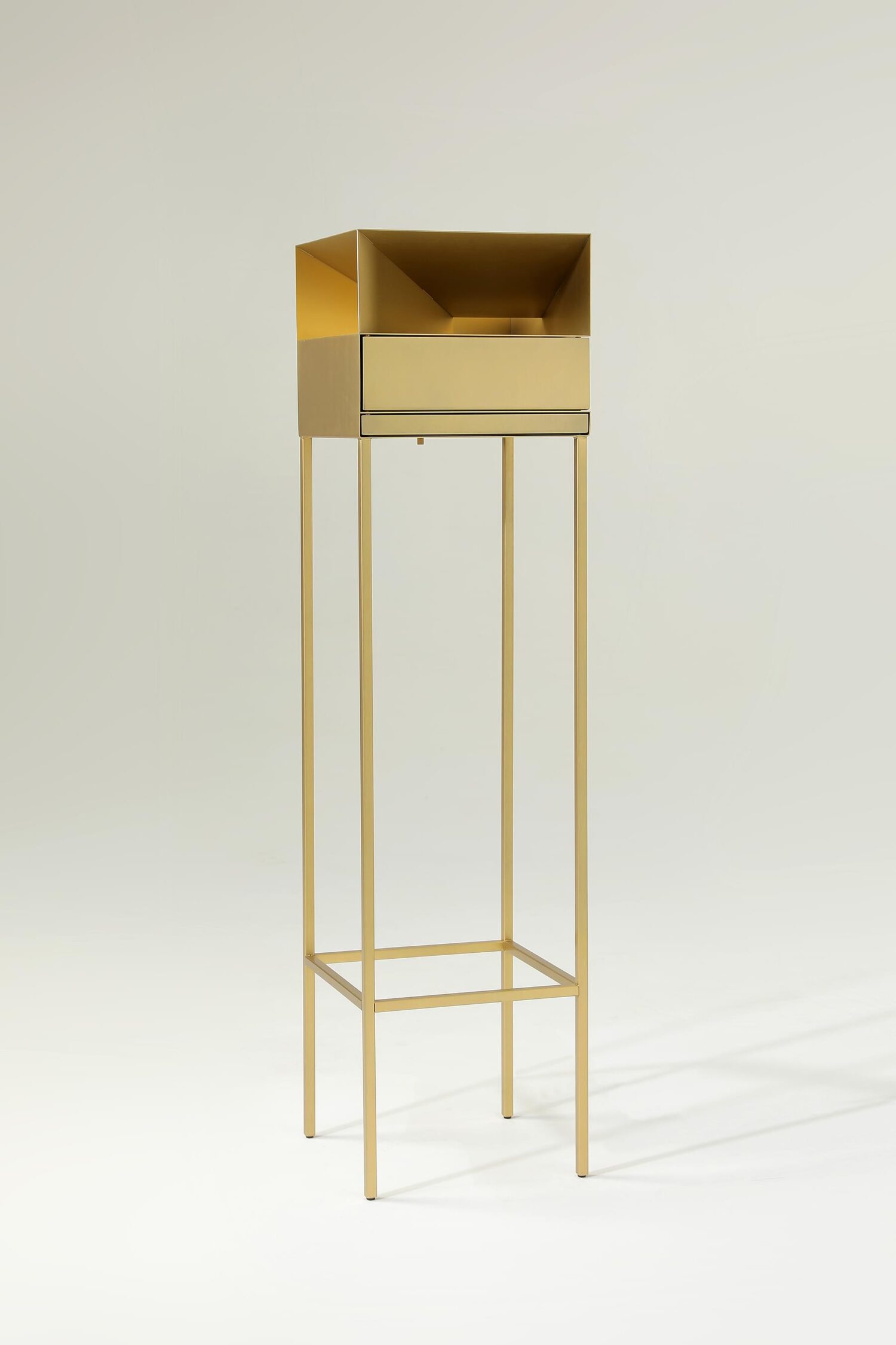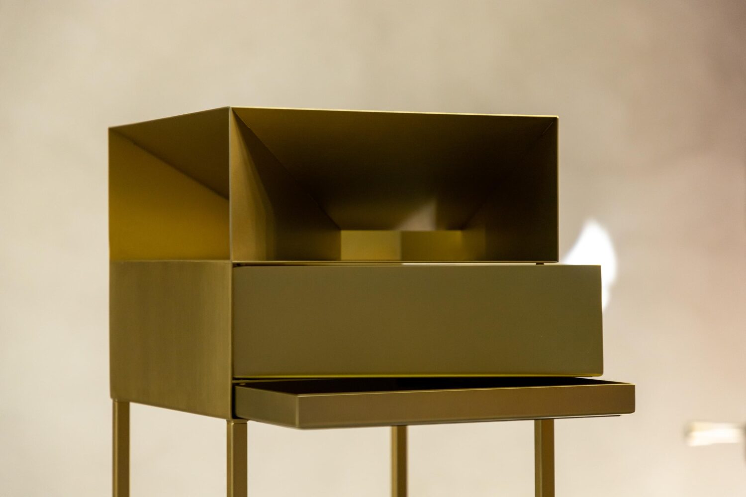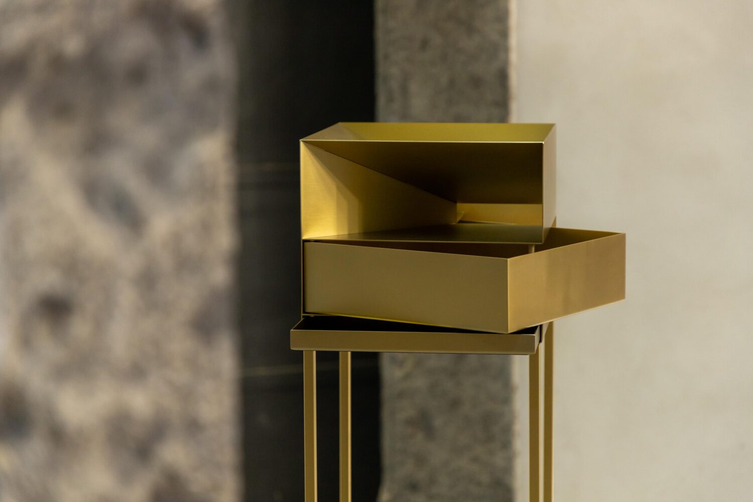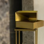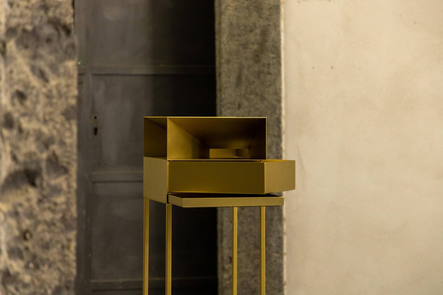 Corte è lo svuotatasche in acciaio finitura naturale, con variante ottone spazzolato, pensato per il gesto veloce del rientro, “getto le chiavi e corro da te”. Un complemento che richiama gli elementi architettonici del Montefeltro, come le feritoie e che, seguendo una costruzione prospettica, presenta dei vuoti per ospitare gli oggetti del quotidiano. Questi, con un gesto semplice, possono scivolare lungo i piani inclinati per poi essere recuperati nei cassetti che si aprono con uno scorrimento circolare, quasi a ricordare il gioco di luci ed ombre creato dal sole nei chiostri rinascimentali. Corte è realizzato in acciaio, metallo che garantisce qualità e durabilità al prodotto. Anche le finiture, applicate attraverso un bagno galvanico, assicurano una scelta consapevole perché il prodotto non viene rivestito da componenti chimici.