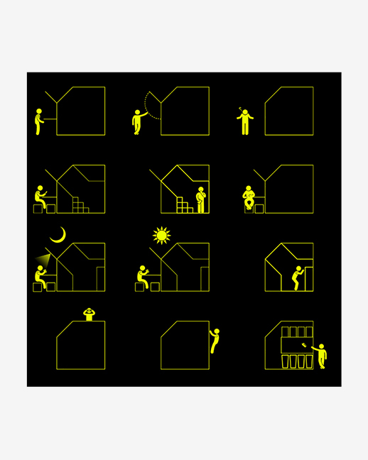 Un piccolo rifugio ludico per abitare i sentieri, progetto su carta, architettura amovibile multifunzionale.