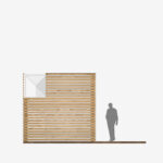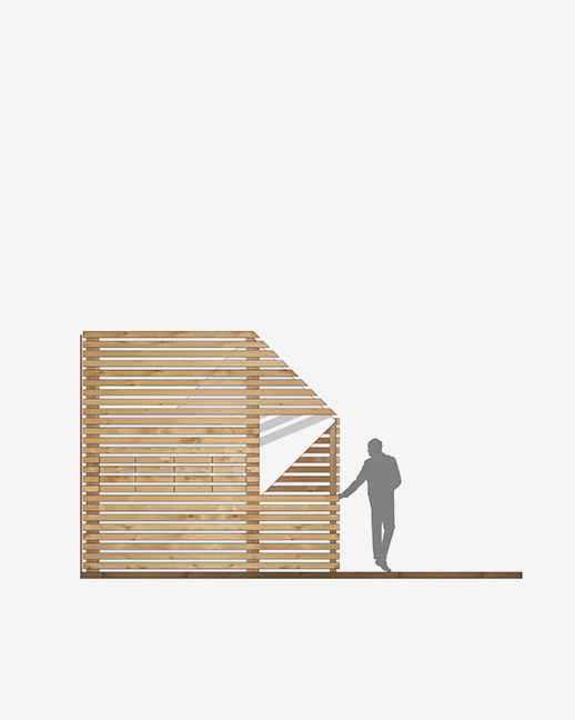 Interamente realizzato in legno, POP-UP è una piccola architettura amovibile e apribile: una scatola che si trasforma a seconda delle esigenze e diventa punto informazione, area ristoro, biblioteca, spazio per la raccolta differenziata o punto panoramico. Una struttura da abitare, illuminare, scalare e attraversare, capace di offrire una pausa naturale lungo i sentieri.