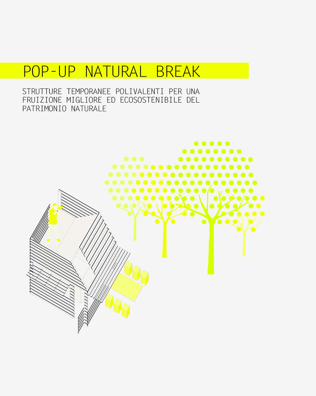 POP-UP Natural Break è un concept progettuale pensato come rifugio leggero e temporaneo, collocabile in qualsiasi contesto naturale. Le priorità sono il rispetto del paesaggio, la fruizione responsabile dei luoghi di interesse naturalistico e un turismo sostenibile, non invasivo.
